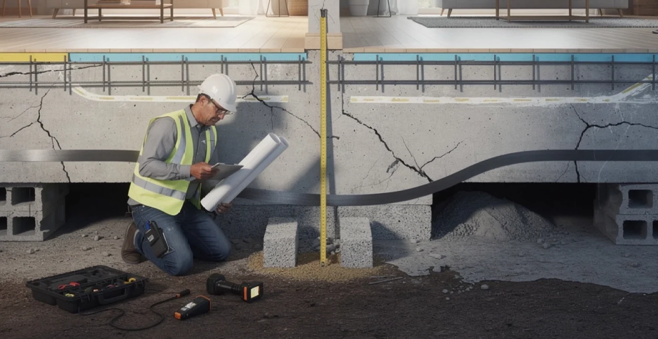 Comment distinguer une fissure superficielle d’une fissure inquiétante sur dalle commune ? Les signes d’alerte incluent une ouverture supérieure à 0,3 mm, une évolution visible dans le temps (élargissement, allongement), une forme en escalier au droit des murs porteurs ou un dénivelé mesurable entre pièces mitoyennes. Dans ces cas, l’intervention d’un ingénieur structure ou d’un bureau d’études géotechniques est indispensable pour identifier l’origine du désordre (mouvement de terrain, fondations sous-dimensionnées, travaux voisins) et proposer les solutions adaptées : micropieux, injection de résine, reprise en sous-œuvre, ceinture béton, etc.